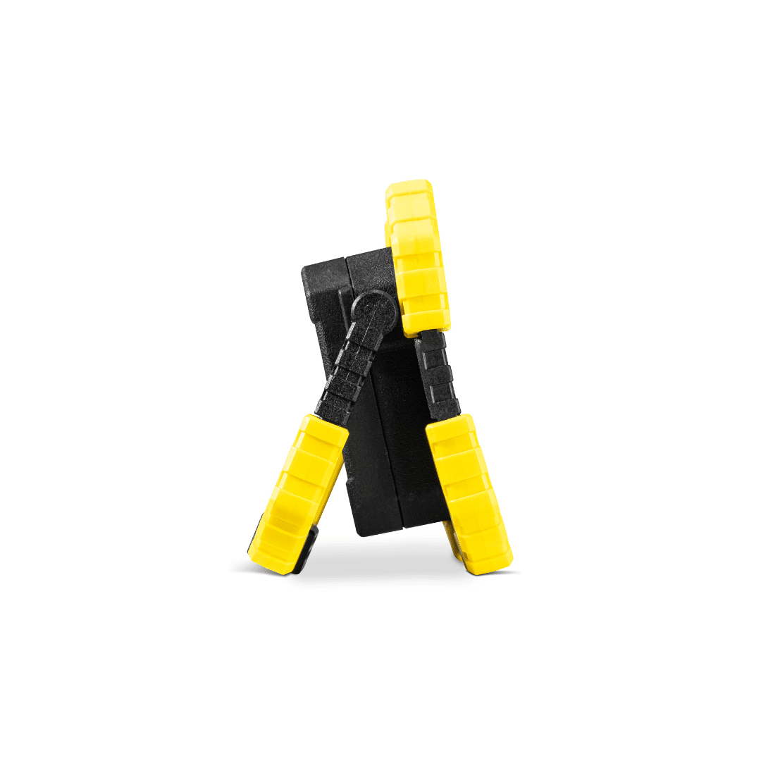 Zusätzlich ist eine starke Magnethalterung im Standfuß integriert. Damit lässt sich die Arbeitsleuchte sicher an metallischen Oberflächen befestigen – ideal für Kfz-Arbeiten, den Motorraum oder Stahlkonstruktionen auf Baustellen.